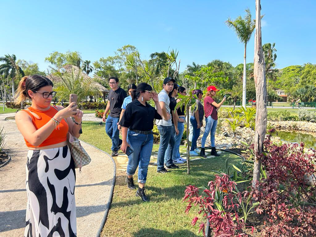 Durante su estadía en el lugar, los estudiantes pudieron observar los diferentes espacios, como las palapas temáticas, el área hidropónica, así como la zona destinada a la colección de árboles bonsái, además recibieron una explicación del área de lombricomposta.
