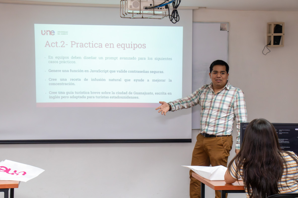 El Centro de Cómputo de la Universidad del Noreste fue sede del Taller de Prompt Engineering, dirigido a aspirantes de la Licenciatura en Ingeniería en Sistemas Computacionales y Electrónicos.