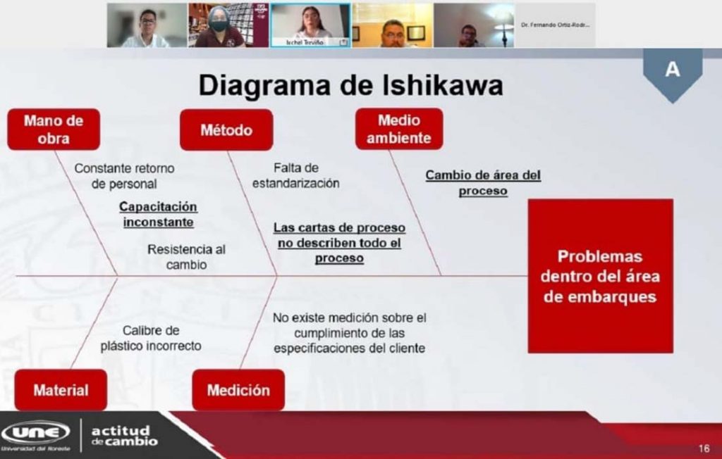 De manera virtual, Debanhi Dávila Pérez, Ixchel Eileen Treviño Castillo y Luis Gerardo Rivera Elías, debatieron y defendieron el tema: “Análisis de inversión y retorno al implementar un manual de procedimientos basado en uso de la metodología Seis Sigma para el área de embarques de empresa maquiladora”, siendo este proyecto el resultado del trabajo que se realiza para la certificación de competencias