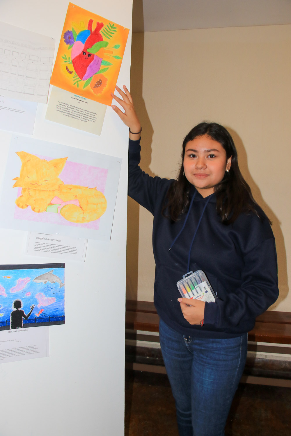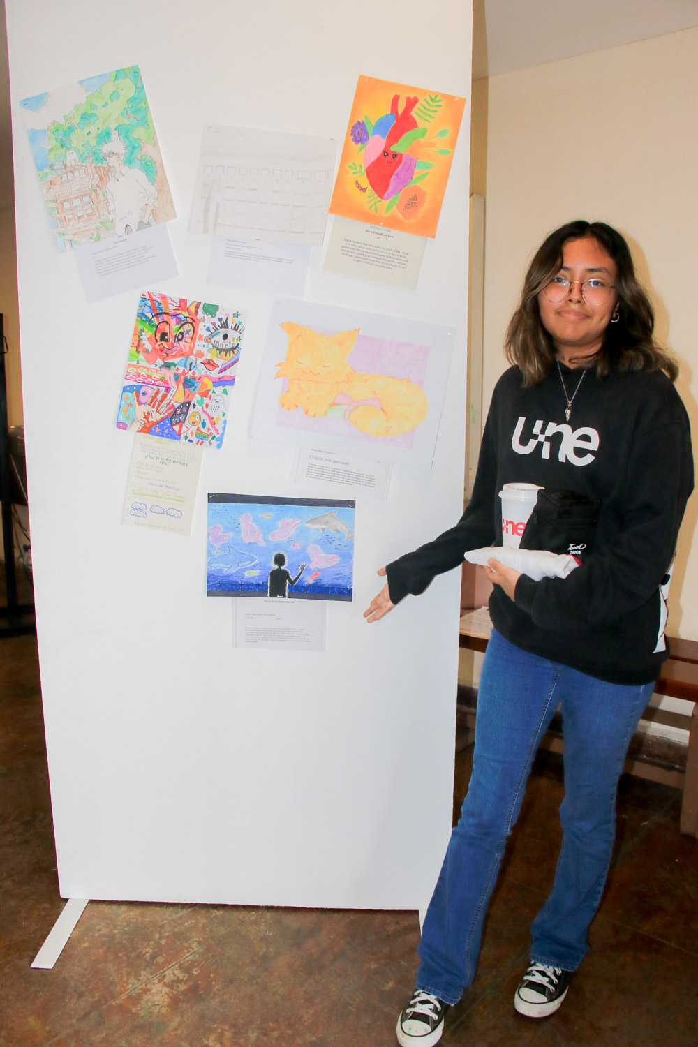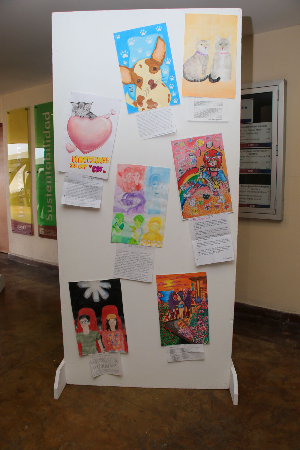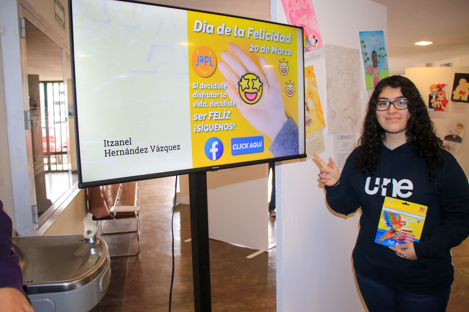 La exposición de los dibujos brindó una oportunidad para apreciar el talento y la creatividad de los estudiantes de Prepa UNE, y celebrar juntos la importancia de la felicidad en nuestras vidas.