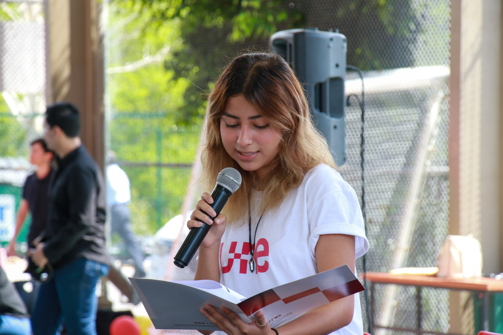 Para dar inicio con la Expo, la Directora del área en mención, Mtra. Nélida Díaz de la Garza dirigió un mensaje de bienvenida a los presentes donde destacó la participación de los alumnos y egresados, estos últimos acudieron como jueces del evento.