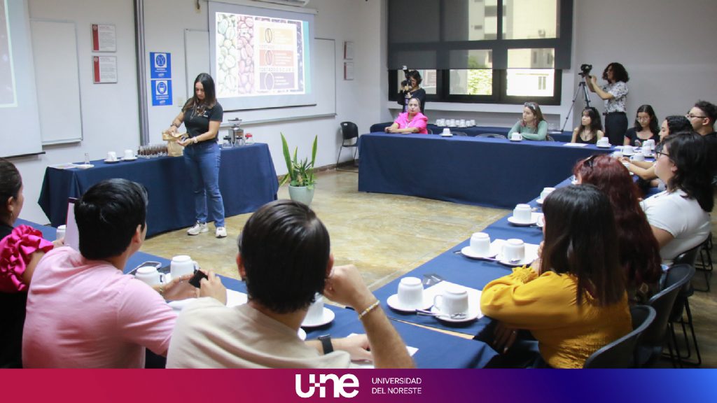 Con el objetivo de aprender sobre las distintas variedades y perfiles del sabor del café, además de aprender técnicas de cata profesional y saber cómo desarrollar el paladar para apreciar las sutilezas de la bebida que se obtiene mediante el percolado de agua caliente a través de los granos tostados y molidos de los frutos de la planta de café, los alumnos de la Licenciatura en Gestión Internacional del Turismo disfrutaron de una cata en las instalaciones de la Universidad del Noreste.