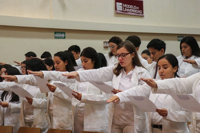 Los estudiantes se comprometieron en tomar la responsabilidad y el esfuerzo para ser buenos médicos.