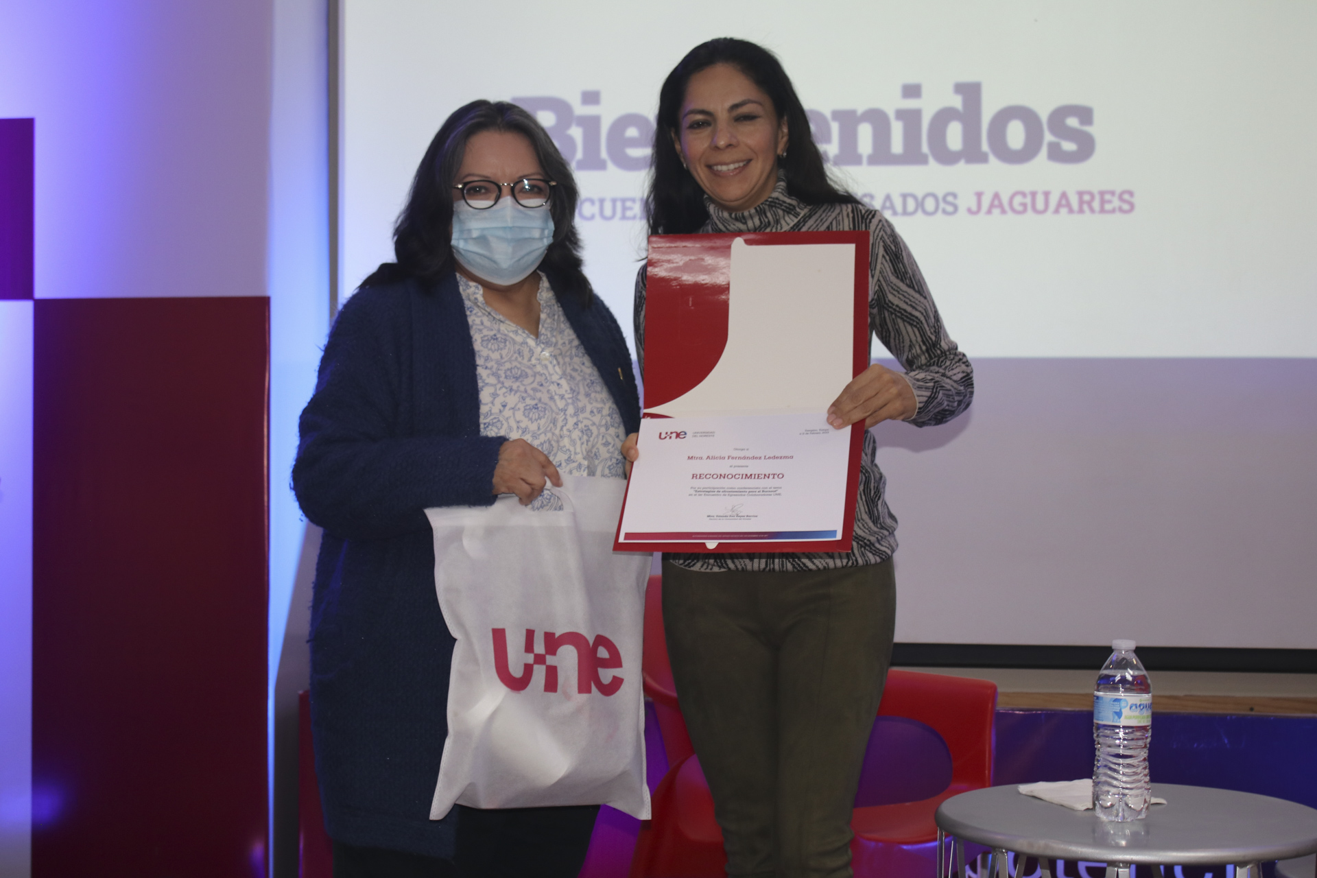 Para dicho evento se dieron cita la Rectora de esta casa de estudios, Mtra. Yolanda Eva Reyes Barrios y la Directora de Liderazgo Académico, Mtra. Alicia Ivette Sierra Sosa quienes externaron unas palabras ante los presentes destacando el valor que agregan a la UNE al compartir su experiencia como colaboradores.
