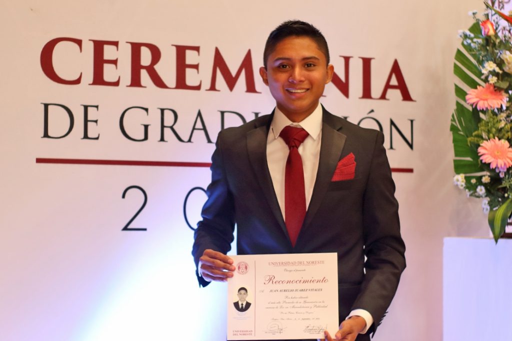 Honor a quien honor merece, es por ello que durante esta ceremonia se reconoció el esfuerzo y la dedicación de aquellos alumnos que mantuvieron durante su formación profesional los mejores promedios, siendo acreedores de esta distinción: Juan Aurelio Juárez Vitales de la Lic. en Mercadotecnia y Publicidad con un promedio de 97.92, y María de Jesús Pérez Moreno de la Lic. en Gestión Internacional del Turismo con un promedio de 96.72.