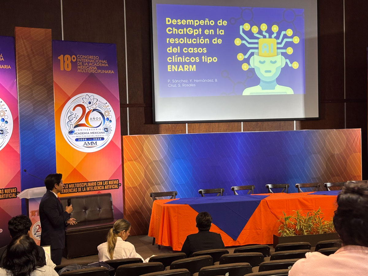 Asimismo, estudiantes integrantes del grupo de Investigación de la Escuela de Medicina “Dr. José Sierra Flores” de la Licenciatura en Médico Cirujano presentaron el trabajo “Desempeño de ChatGPT en la resolución de preguntas del ENARM”. En este proyecto participaron Patricio Sánchez Ortega, Gabriela Hernández González y Briseyda Ixchel Cruz Zavaleta, bajo la asesoría de la Dra. Sandra Rosales Gracia.