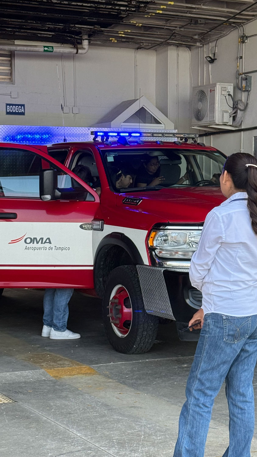 Uno de los momentos más destacados fue la participación del Ing. Leonel del Ángel, Comandante del Servicio de Extinción de Incendios (SEI), quien, junto con su equipo, compartió la relevancia de su labor en el contexto de un aeropuerto ubicado dentro de una zona conurbada. Asimismo, se abordaron las iniciativas sustentables y sociales que el aeropuerto promueve en su entorno.