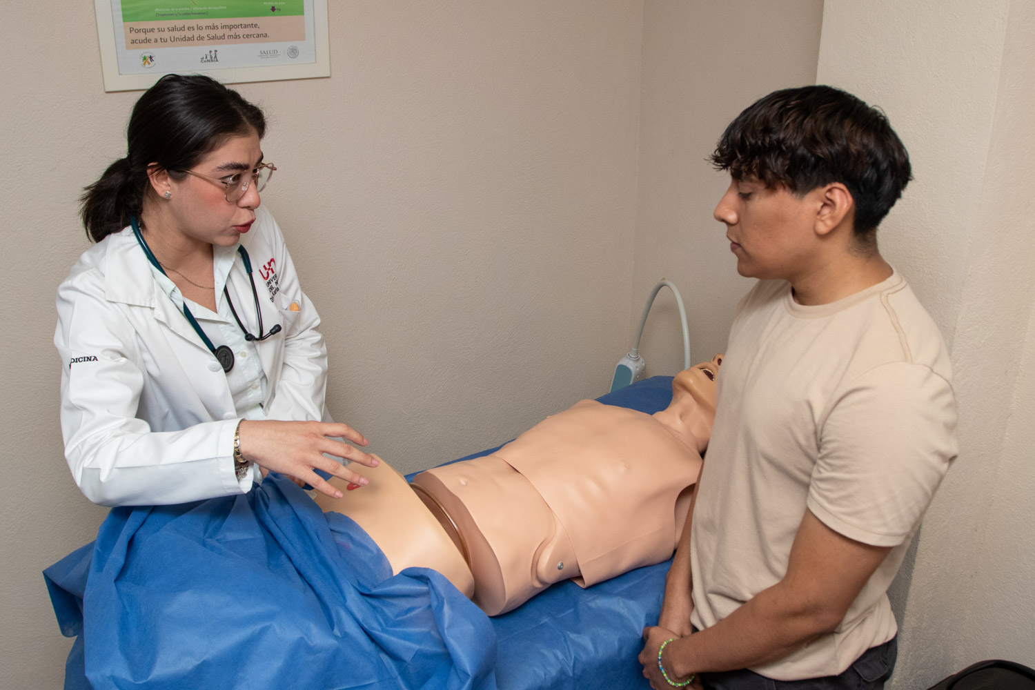 Una característica clave de esta evaluación es la participación de pacientes estandarizados, es decir, alumnos previamente capacitados para simular distintas patologías y situaciones clínicas. Este proceso, denominado enseñanza escalonada, permite a los estudiantes poner en práctica sus habilidades en situaciones que replican de forma realista los desafíos que encontrarán en su ejercicio profesional, sin poner en riesgo la seguridad de pacientes reales.