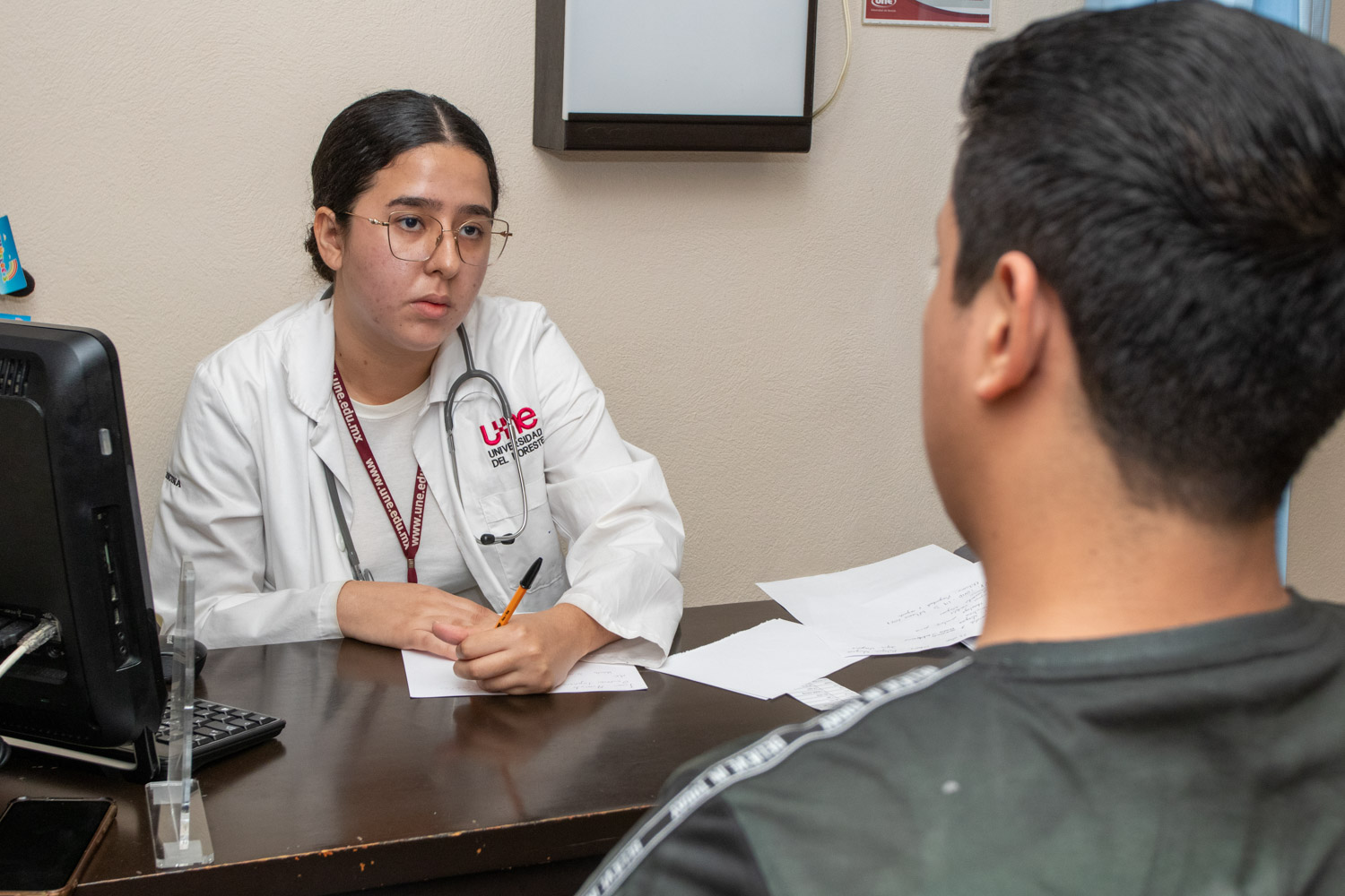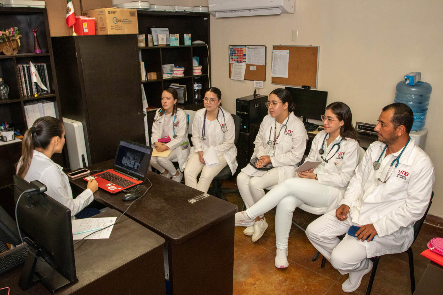 Un total de 113 alumnos de la Escuela de Medicina “Dr. José Sierra Flores” de la Universidad del Noreste participaron recientemente en el Examen Clínico Objetivo Estructurado (ECOE), llevado a cabo en las instalaciones de la Clínica UNE. Esta evaluación constituye un requisito fundamental para la obtención del título de Licenciado en Médico Cirujano, y busca garantizar que los futuros profesionales de la salud cuenten con los conocimientos, habilidades técnicas y capacidad de toma de decisiones necesarias para ejercer de manera competente en el campo médico.