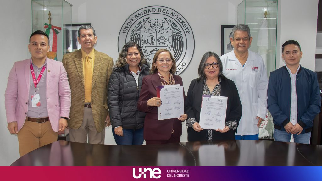 La mañana del 19 de febrero, la Universidad del Noreste (UNE) y el Sistema para el Desarrollo Integral de la Familia (DIF) Altamira formalizaron un convenio interinstitucional que promete fortalecer la colaboración entre ambas entidades.