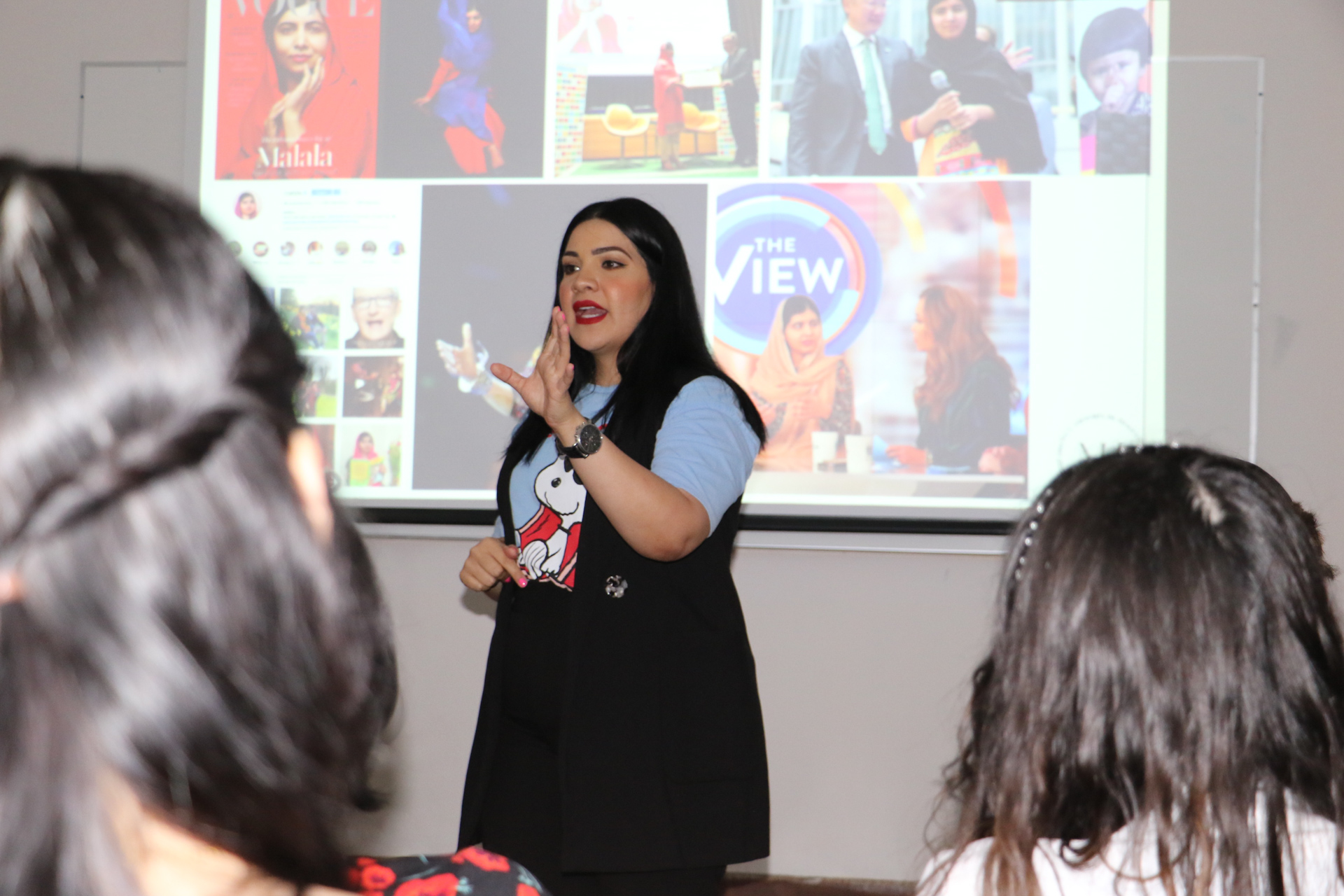En este taller, la experta en diseño de imagen, dio tips a las alumnas para que obtengan los conocimientos y herramientas necesarias para proyectar una imagen profesional, segura y de éxito, los pasos para que apliquen de manera fácil y práctica la técnica profesional para reforzar su autoestima y conozcan la importancia del lenguaje corporal, la ropa adecuada para el trabajo y negocios.