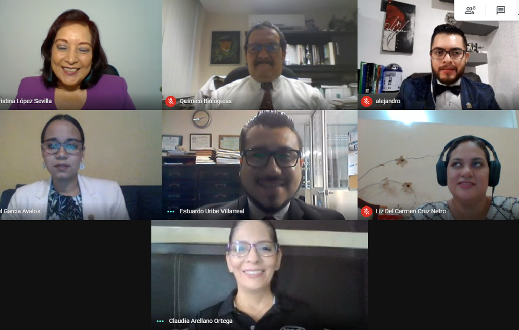 El acto solemne se realizó mediante una sesión virtual a través de Meet, en donde la Mtra. Cristina López Sevilla, Vicerrectora Académica, la Lic. Claudia Arellano Ortega, Directora de Administración del Capital Humano, el Mtro. Rodolfo Vilchis Aguirre, Director del Área de Ciencias Químico Biológicas y directores de las diferentes carreras que pertenecen al Área de Ciencias Químico Biológicas, acompañaron al Mtro. Estuardo Uribe en esta importante ceremonia.