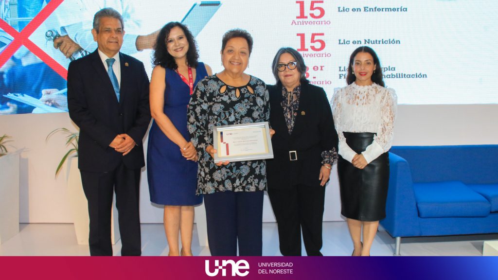 “Me siento profundamente conmovida y agradecida por esta distinción que me hace la Universidad del Noreste. En la UNE encontré mi segundo hogar. Ahí conocí a tantas personas dispuestas a resolver los problemas que se presentaban con buena voluntad y siempre en colaboración para sacar adelante las tareas que nos ocupaban”.