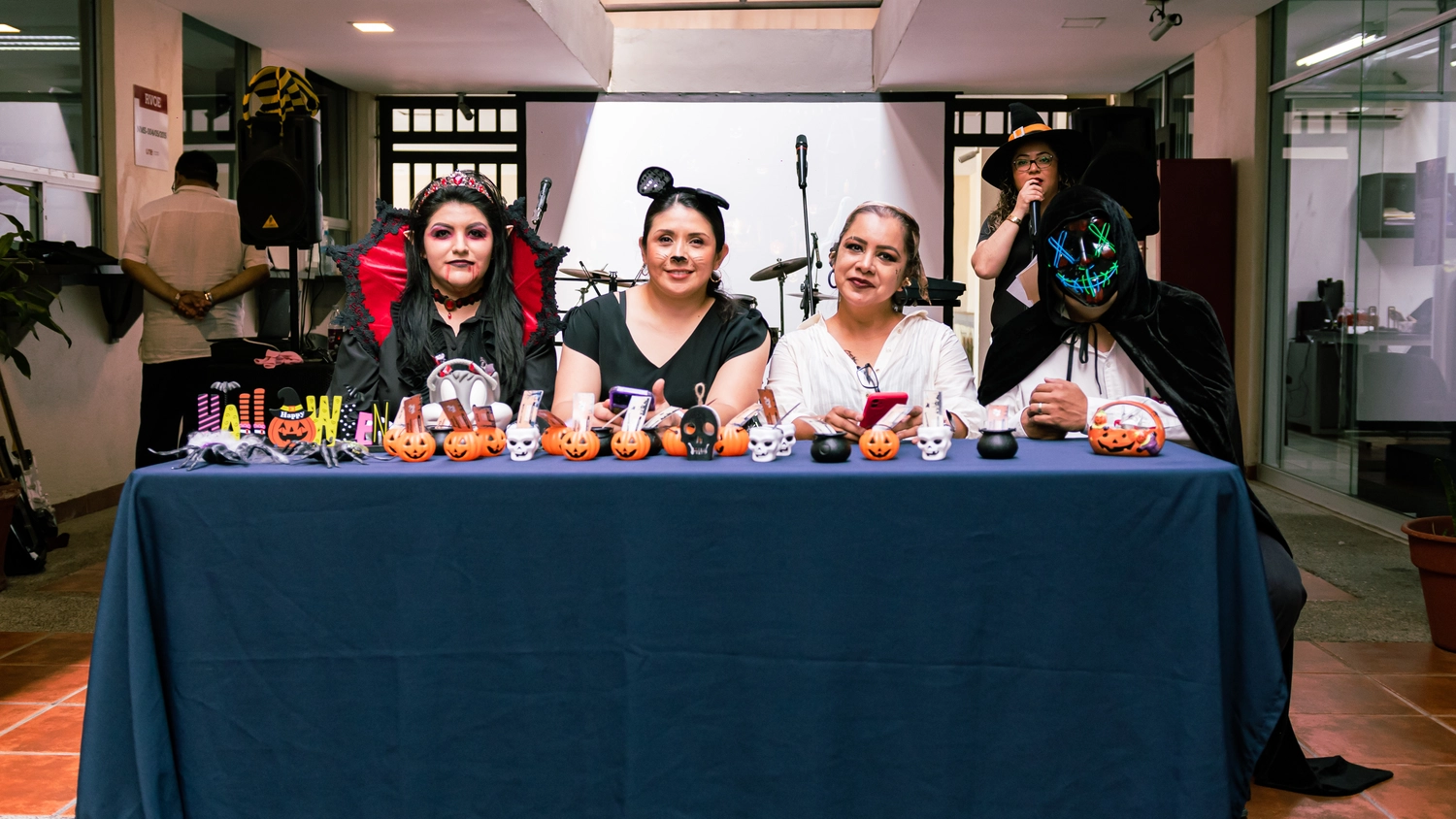 La música estuvo a cargo de la talentosa banda de prepa, que acompañó la celebración con una presentación en vivo, creando un ambiente animado y lleno de energía. Además, los maestros se unieron al evento asistiendo disfrazados, lo que añadió un toque especial de cercanía y complicidad con sus estudiantes.