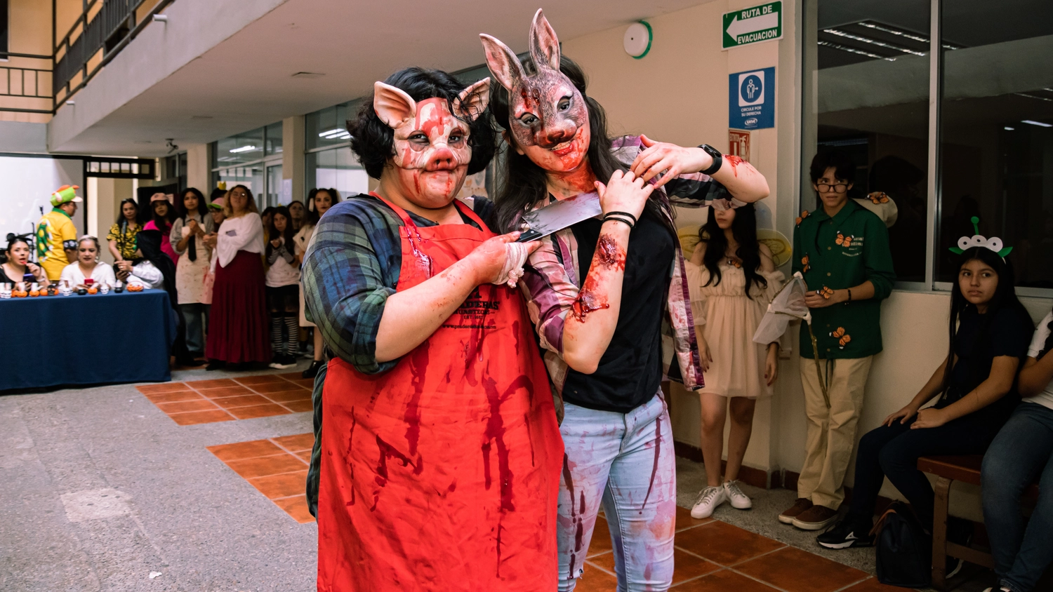 Uno de los elementos más destacados fue la decoración de los salones, cada uno ambientado con temáticas alusivas a Halloween. Inspirados en clásicos del cine de terror, casas embrujadas y mundos de fantasía oscura, cada salón ofrece una experiencia visual única, invitando a los estudiantes a sumergirse en la creatividad de sus compañeros y profesores.