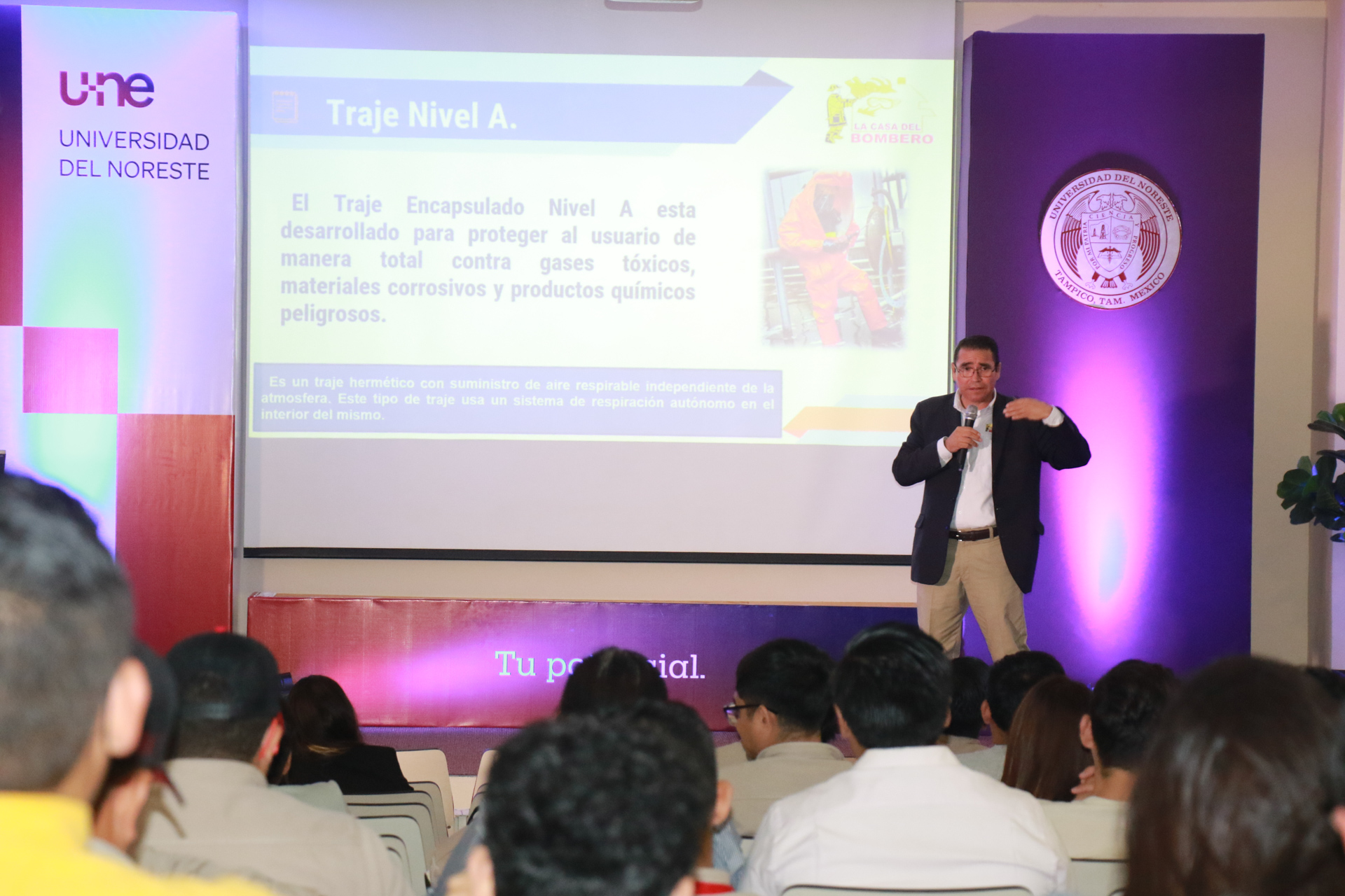 En este evento se contó con la presencia de la Rectora de la UNE, Mtra. Yolanda Eva Reyes Barrios; el Director de área de Ingeniería y Ciencias Químicas, Dr. Jaime Alfredo Mariano Torres; Director de las carreras de Ingeniería Ambiental e Ingeniería Petrolera, Mtro. Estuardo Uribe Villarreal; Directora de la carrera Quimico Farmaceutico Biologo, Mtra. Raquel García Avalos y el Director de la carrera modalidad ejecutiva Química Clínica, Mtro. Jose Alejandro Torres Torres; investigadores, ingenieros, académicos, empresarios, estudiantes y autoridades de esta casa de estudio.