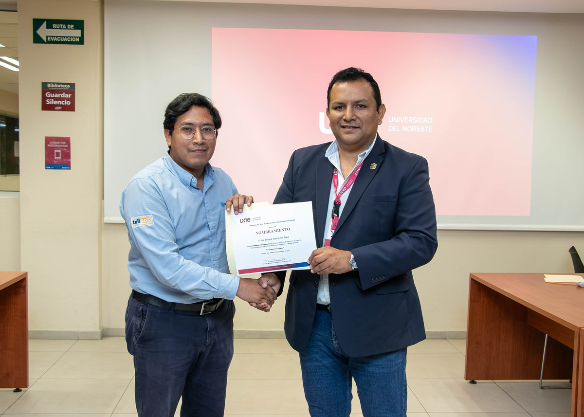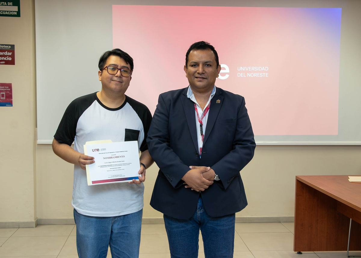 Al cierre de la jornada, la Universidad del Noreste reconoció e incorporó formalmente a los nuevos miembros del Consejo Consultivo, el Ing. Enrique Axel Avena Tapia y el Dr. Edgar Alberto Oviedo, quienes aportarán su experiencia y visión estratégica al desarrollo futuro de la carrera.