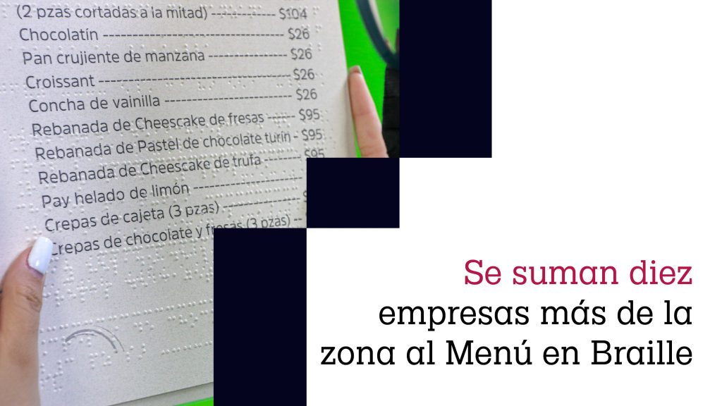 El menú en braille es una transcripción en relieve que beneficia a las personas con discapacidad visual, total o parcial.