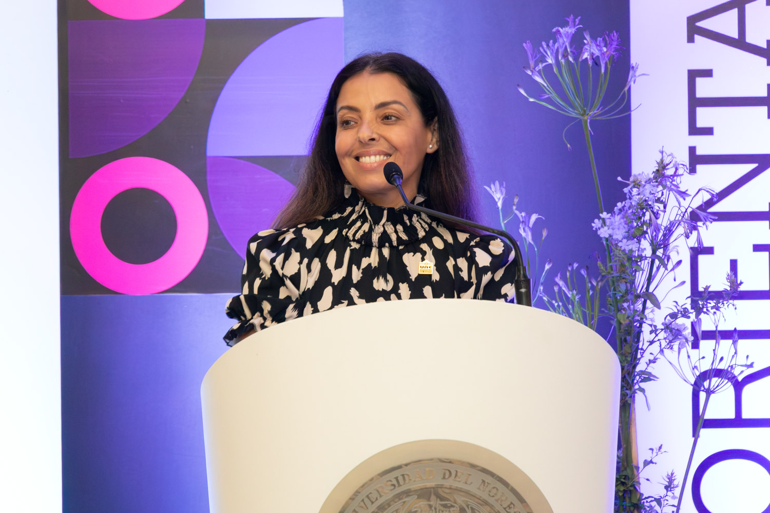 La Dirección de Liderazgo Académico, encabezada por la Mtra. Alicia Ivette Sierra Sosa, tuvo a su cargo esta entrega de distinciones y en su mensaje expresó: “Queridos docentes de la Universidad del Noreste, nos reúne esta fecha para honrar la vocación más noble que existe: la de enseñar, la de tocar vidas con conocimiento, formar carácter con ejemplo, sembrar propósito en cada aula. Ustedes no solo imparten asignaturas, moldean futuros, acompañan procesos y dejan huellas que trascienden generaciones.”