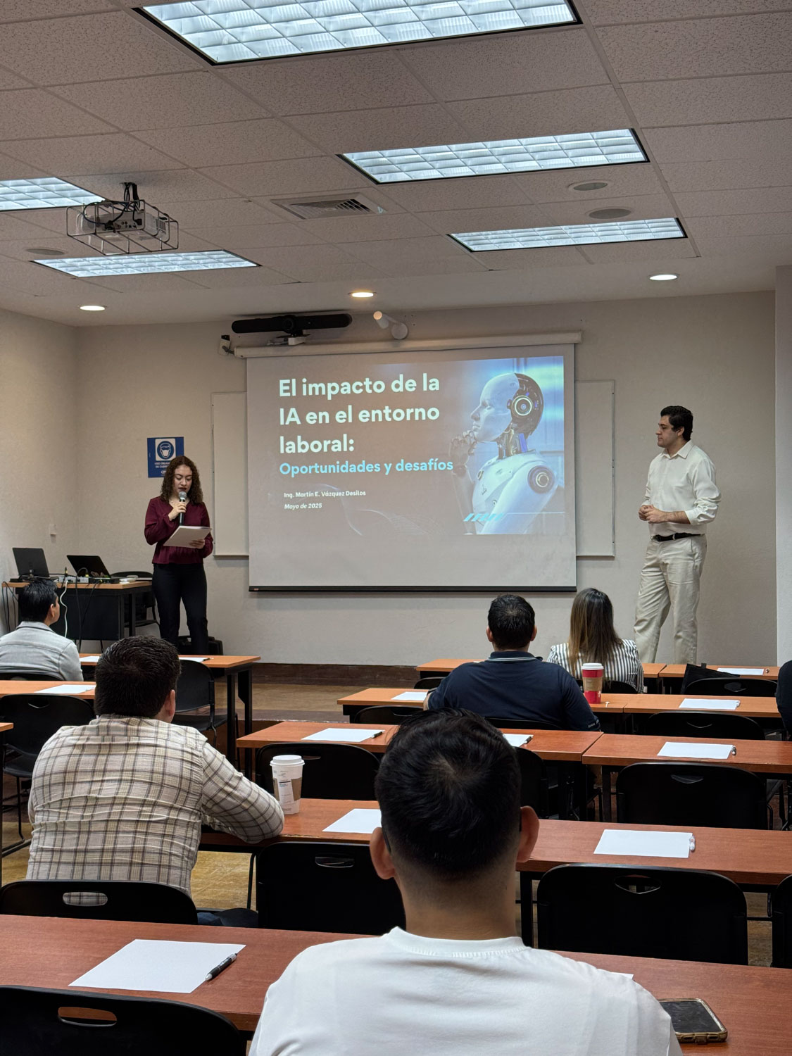 Durante la conferencia, Vázquez Desilos compartió ejemplos prácticos sobre la aplicación de la inteligencia artificial en distintos sectores laborales, subrayando las oportunidades y desafíos que representa esta tecnología en el panorama profesional actual. La actividad generó un valioso espacio de reflexión y actualización para los asistentes, fortaleciendo su preparación ante las nuevas demandas del mercado laboral.