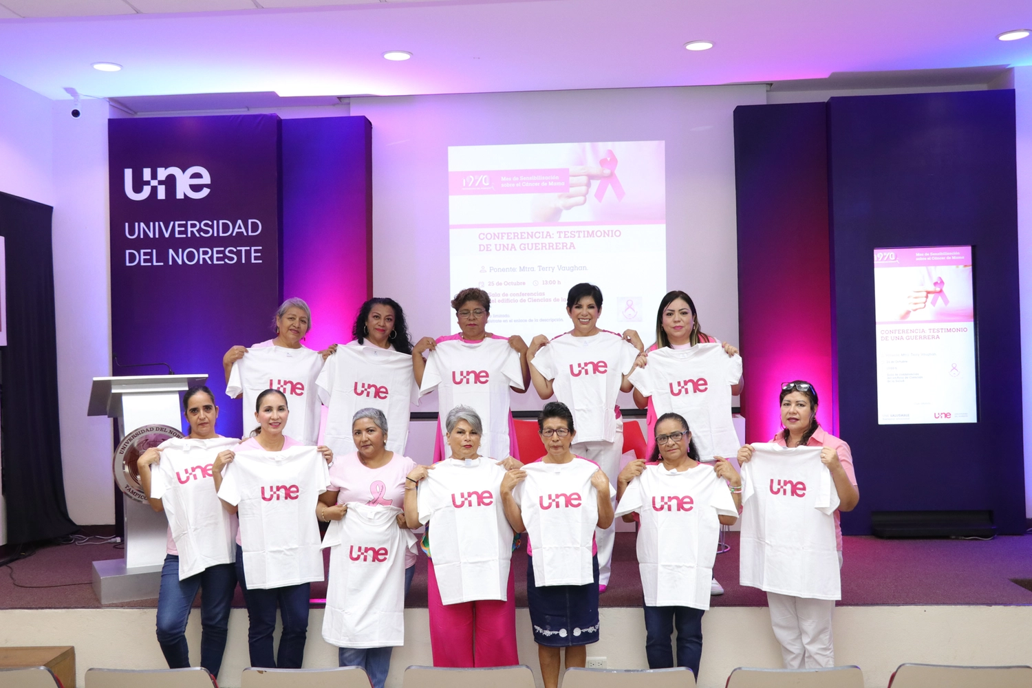 Durante octubre, la Universidad del Noreste llevó a cabo una serie de actividades en el marco del Mes Rosa, reafirmando su compromiso con la sensibilización y prevención del cáncer de mama. Con eventos dirigidos a estudiantes, colaboradoras y sus familias, así como a la comunidad de egresados y empresas quienes se encontraban conectados vía zoom, y replicaron las conferencias a su comunidad de colaboradores. La UNE buscó informar y crear conciencia sobre la importancia de la detección temprana y la educación en torno a esta enfermedad.