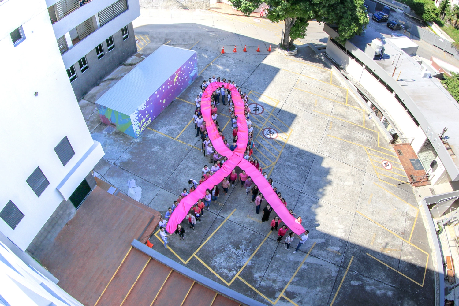 Además, estudiantes, docentes y colaboradores formaron un “Lazo Rosa” en representación del apoyo a todas aquellas personas que han enfrentado esta enfermedad.
